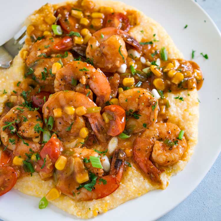 Creamy southern grits topped with grilled shrimp and andouille sausage tossed in a garlic butter creole sauce.